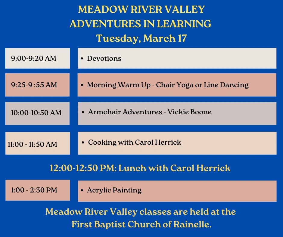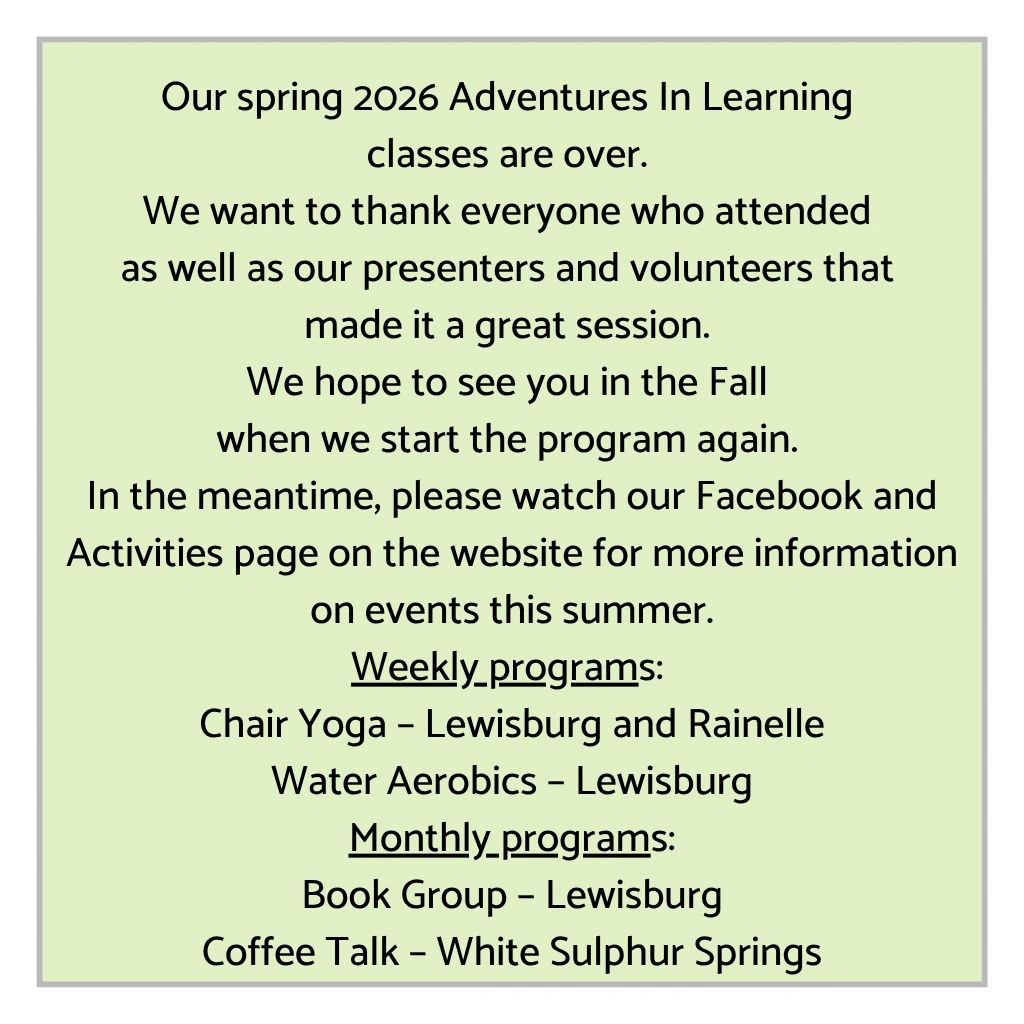Our spring session of Adventures In Learning will start on Thursday March 5 and end on April 9th